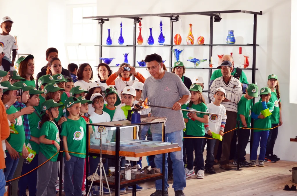 Descubra a magia do vidro em primeira mão. Nos nossos workshops, aprende técnicas de sopro, modelagem e moldagem, criando a sua própria peça artesanal sob orientação do Mestre Alfredo Poeiras. Uma experiência prática e inspiradora, onde cada gesto transforma o vidro em arte.