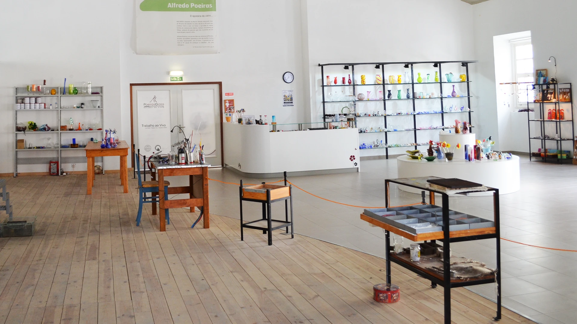Uma experiência imersiva para grupos e visitantes. Acompanhe todo o processo de fabrico artesanal, desde o vidro em fusão até à peça final, e viva de perto a tradição e criatividade que distinguem o Estúdio PoeirasGlass. Ideal para turistas, escolas ou eventos especiais.