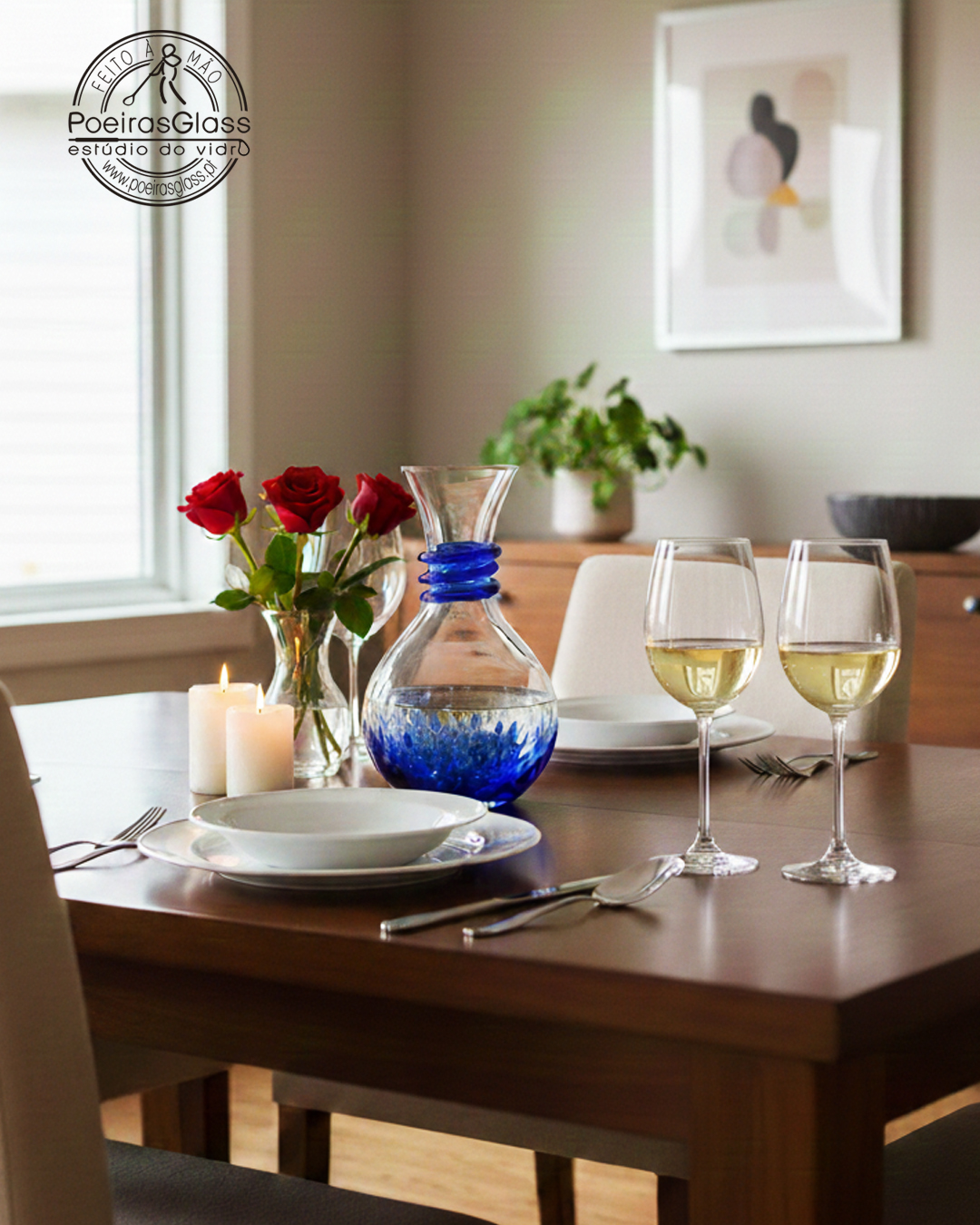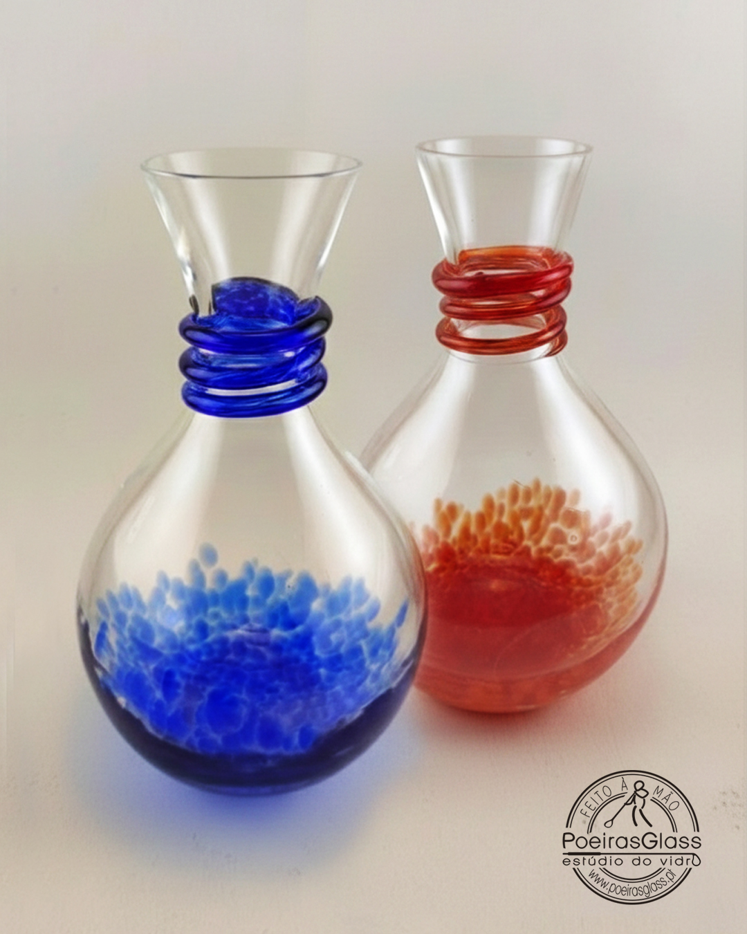 A forma, o tamanho e o efeito da cor é sempre diferente em cada peça, devido ao processo artesanal, tornando-a numa peça especial e única. A peça vem com certificação Original PoeirasGlass.