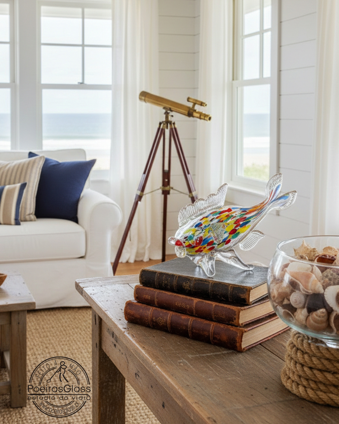 As figuras de animais em vidro da PoeirasGlass são mais do que meros objetos decorativos; são pequenas esculturas que capturam a essência da natureza com a delicadeza e o brilho que só o vidro artesanal consegue oferecer. ​Integrar estas peças num ambiente, como vimos na imagem da sua sala, traz um toque de sofisticação e personalidade.