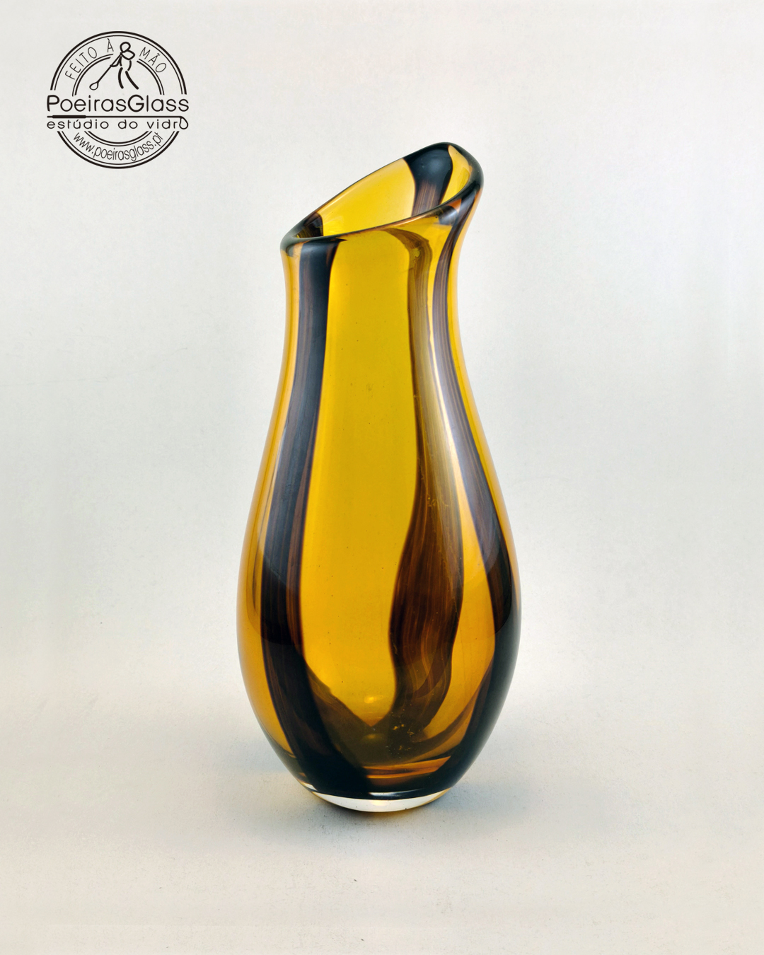 A forma, o tamanho e o efeito da cor é sempre diferente em cada peça, devido ao processo artesanal, tornando-a numa peça especial e única. A peça vem com certificação Original PoeirasGlass.