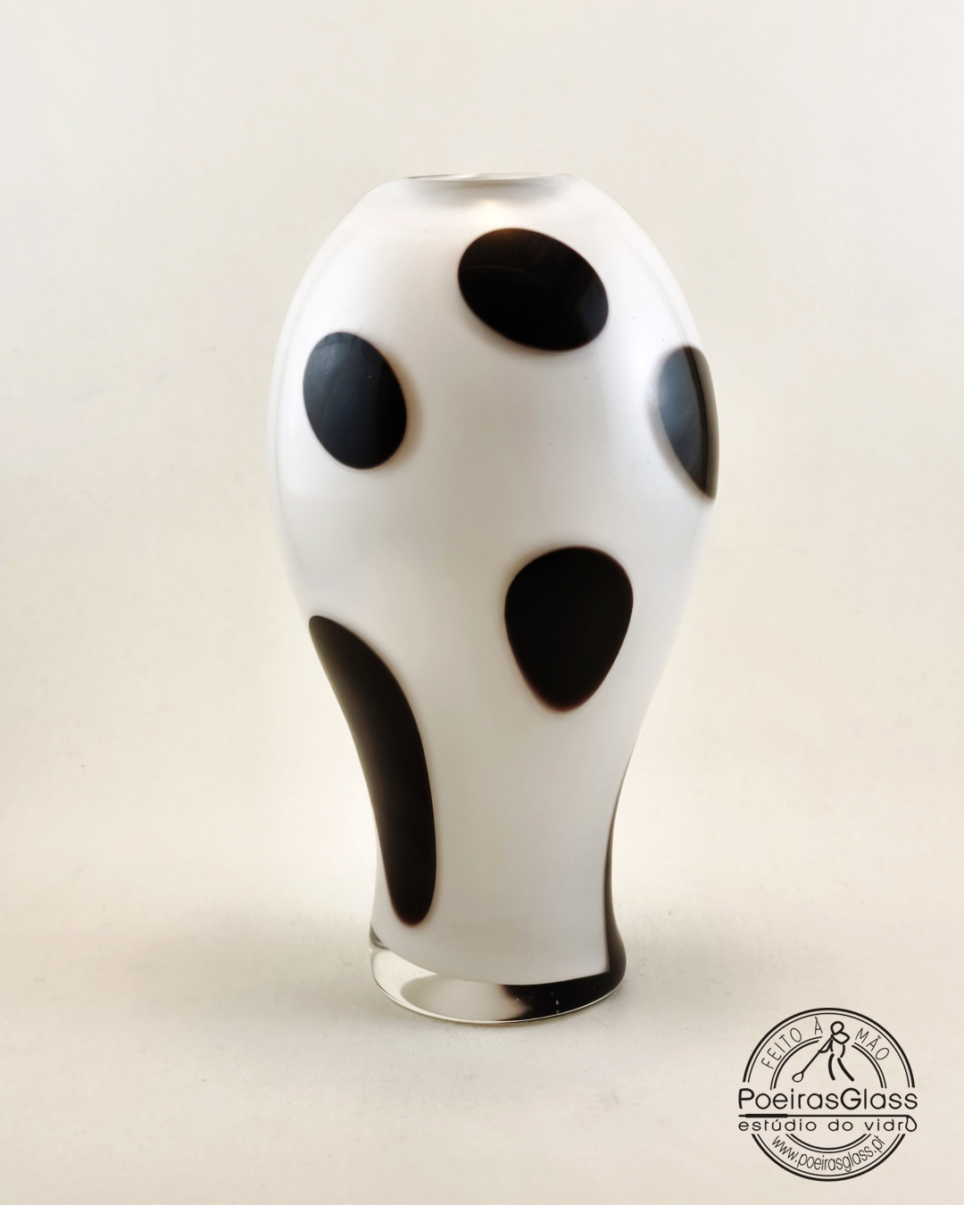 Esta coleção é inspirada nos Dálmatas, com contrastes branco e preto. A jarra tem uma cor base Branca ou preto depois é colocada uma pequenas bolas de cor oposta de forma aleatória. A boca é cortada com uma tesoura criando uma forma única, dando um toque elegante e Contemporâneo.
