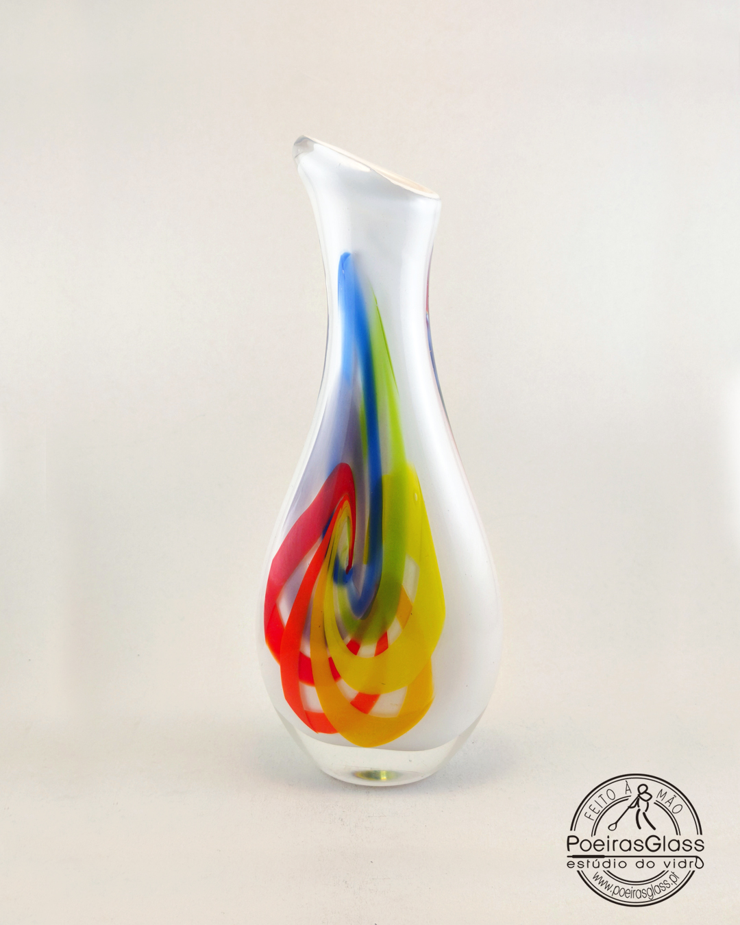 A jarra tem uma cor de base Branco depois é colocada uma mistura de cores vivas por cima, dando um toque elegante e Contemporâneo.