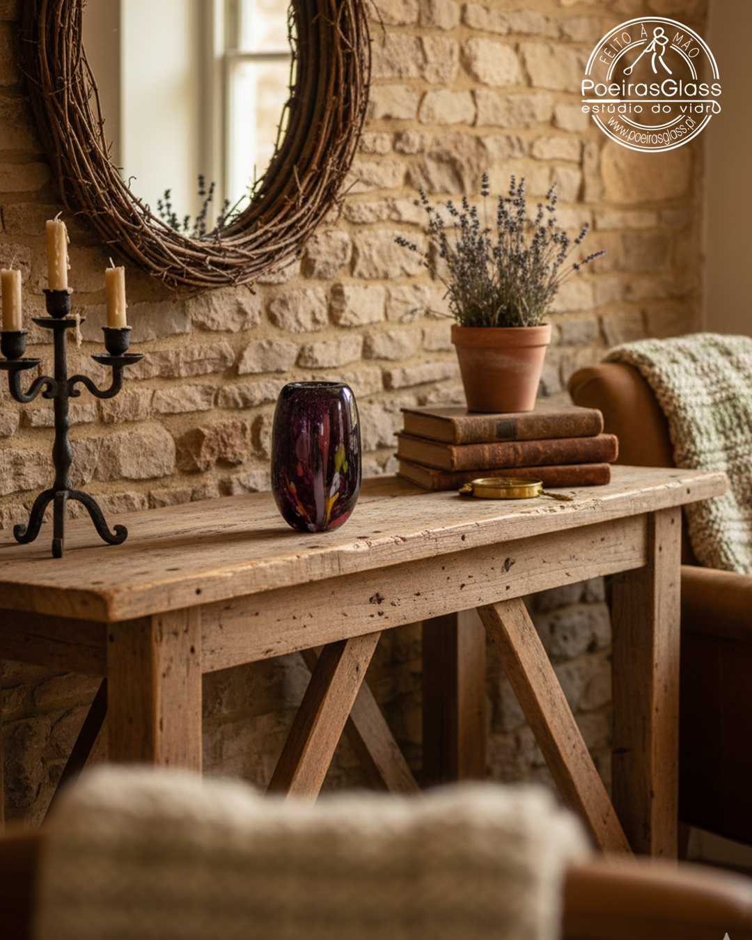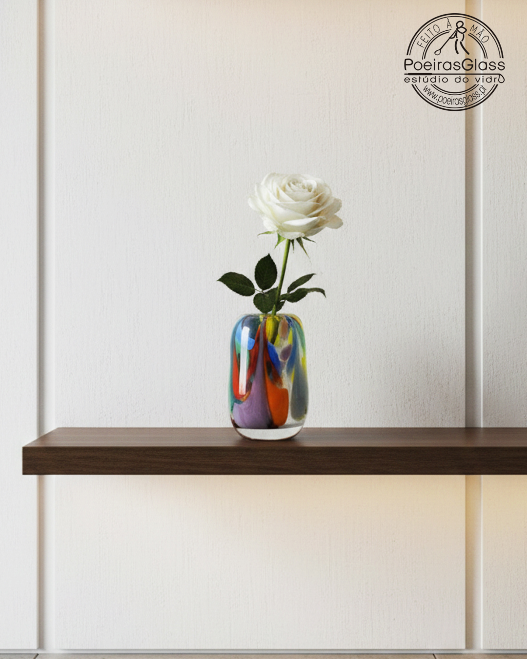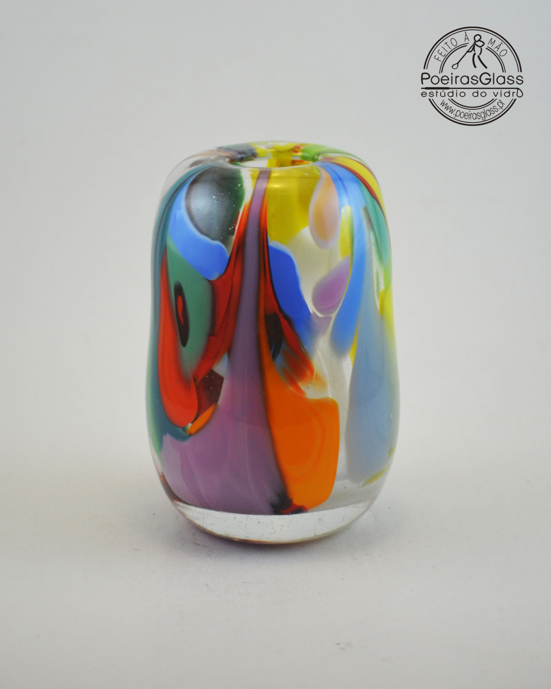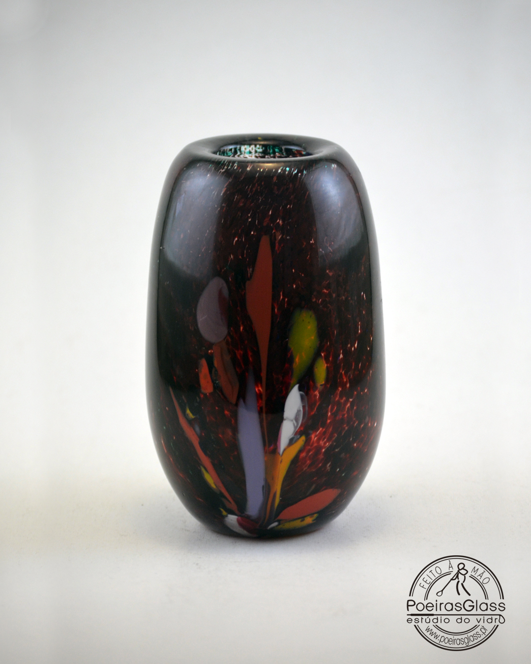 A forma, o tamanho e o efeito da cor é sempre diferente em cada peça, devido ao processo artesanal, tornando-a numa peça especial e única. A peça vem com certificação Original PoeirasGlass.