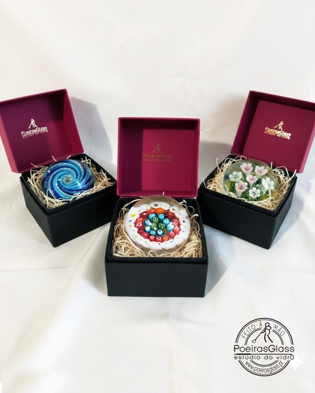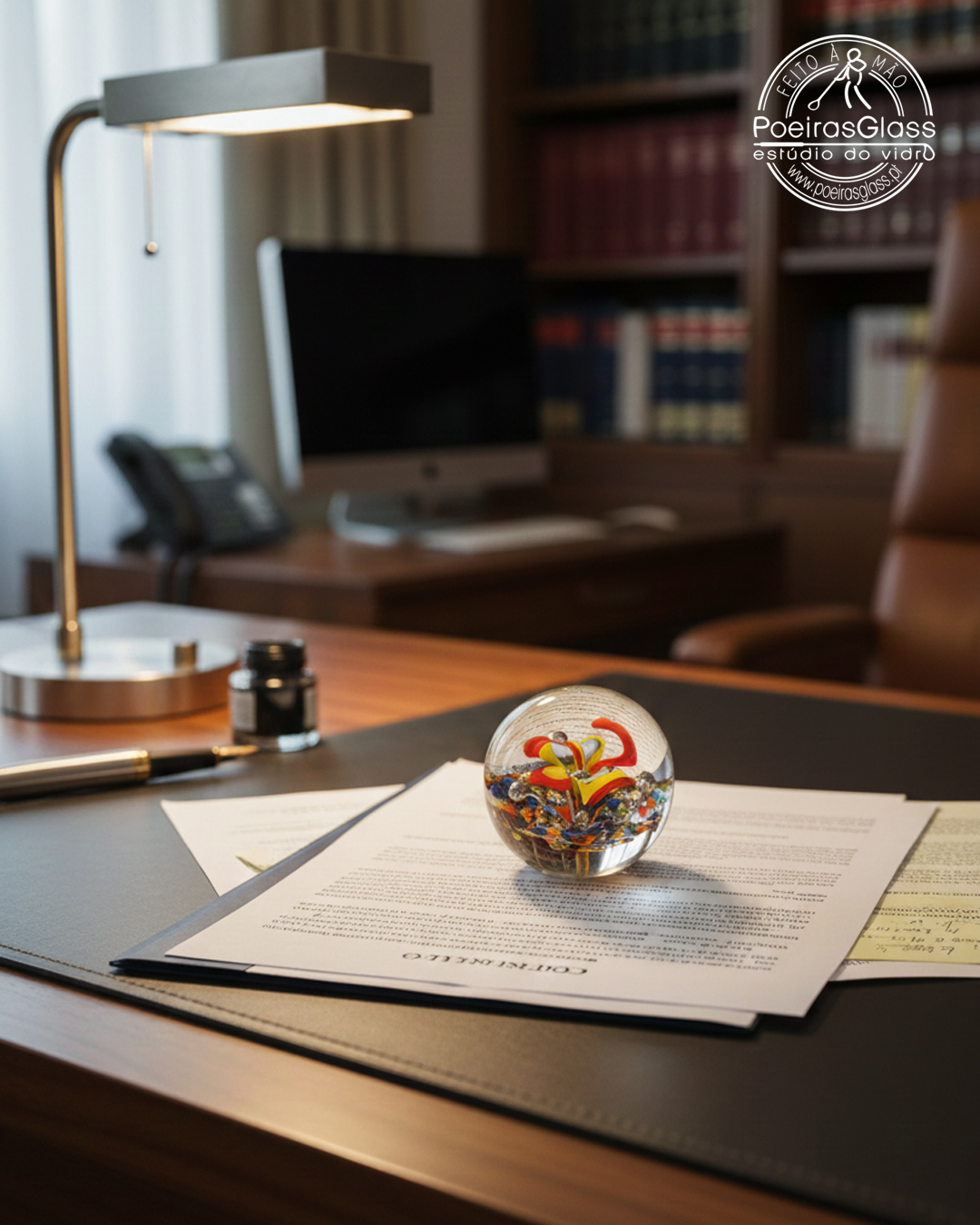 Um Pisa Papel PoeirasGlass é mais do que um acessório para o escritório. É possuir uma peça de vidro artístico que carrega consigo a história das mãos que a moldaram. No topo de uma secretária de madeira ou como peça decorativa do seu escritório, ele reflete bom gosto e uma valorização profunda pelas artes manuais.