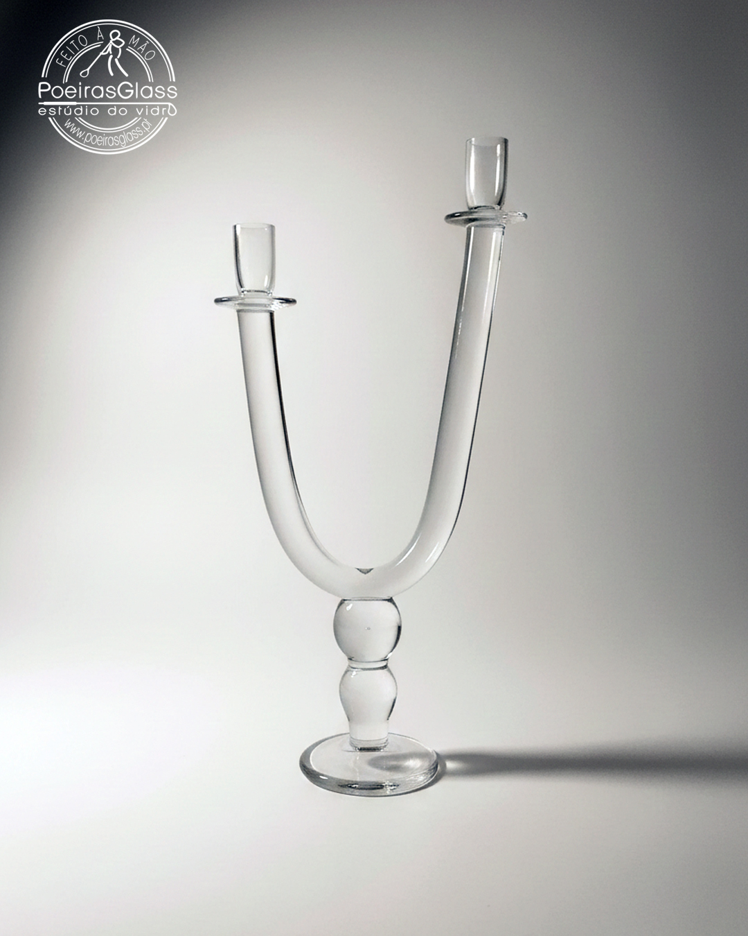 Candelabro de vidro vintage de dois braços.